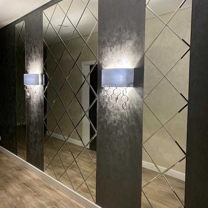 Использована серебряная зеркальная плитка «вытянутый ромб».